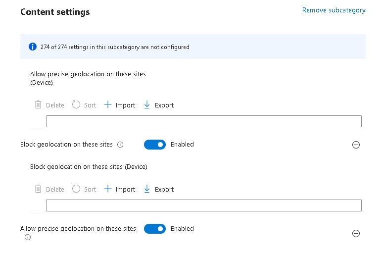 - The Windows OS location service must be enabled for any of this to function. if the device-level location service is off (controlled via Privacy > Turn off location in the Settings Catalog), Edge will not be able to resolve geolocation regardless of these policies